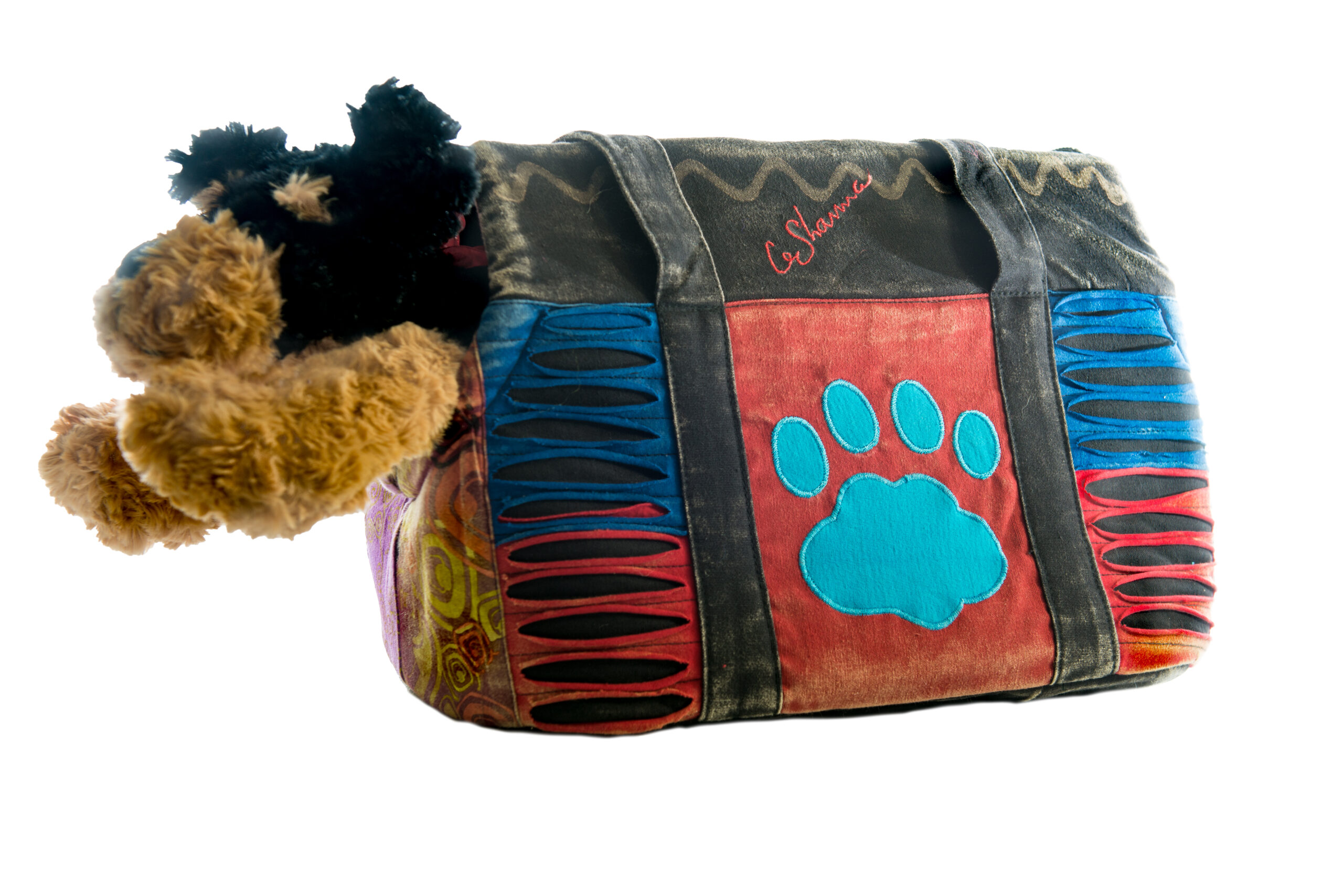 • Cotton-Dog Carrier (Black/Paw Print), Handmade with 100% Cotton, Stylish and Practical, Ideal for Small Dogs