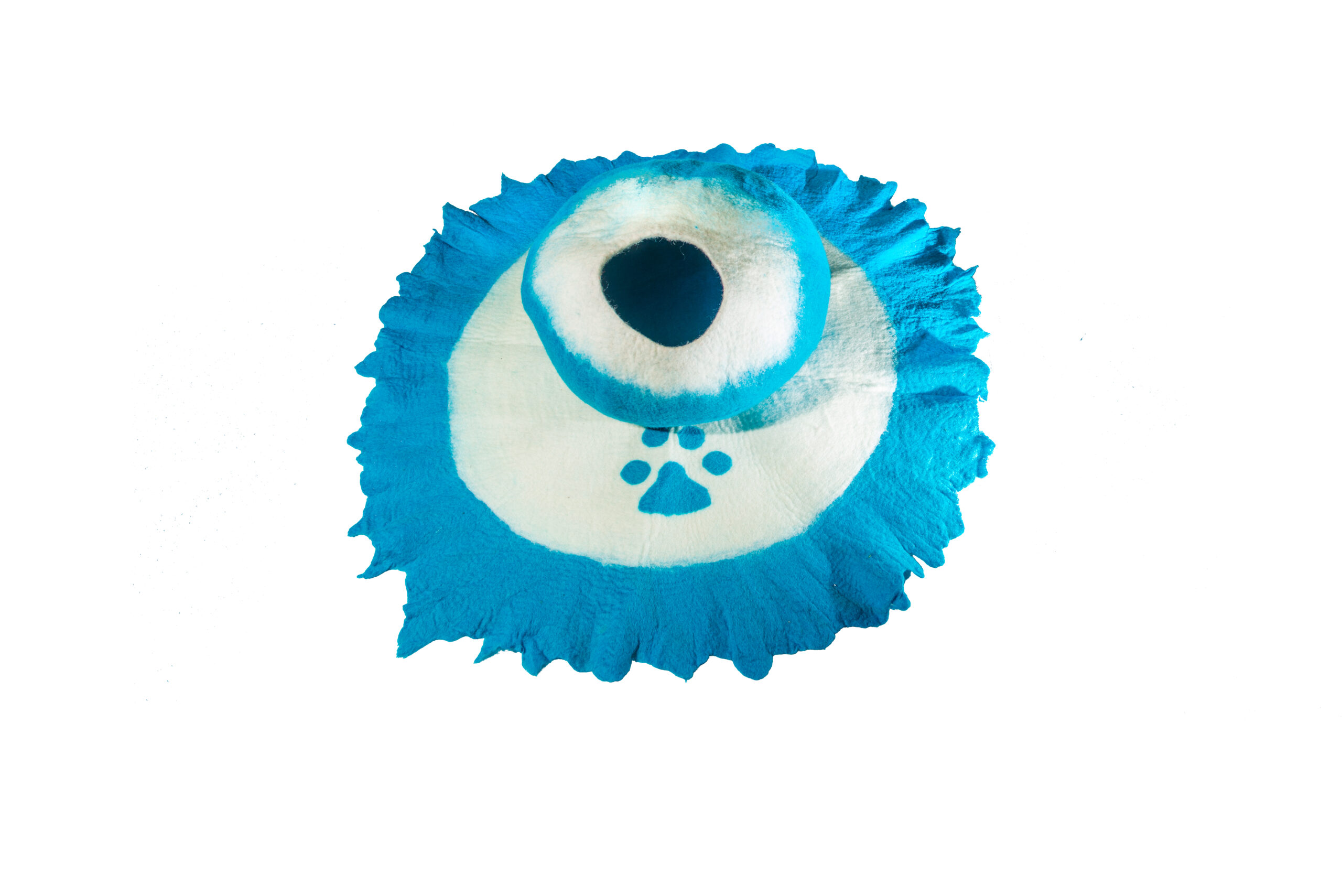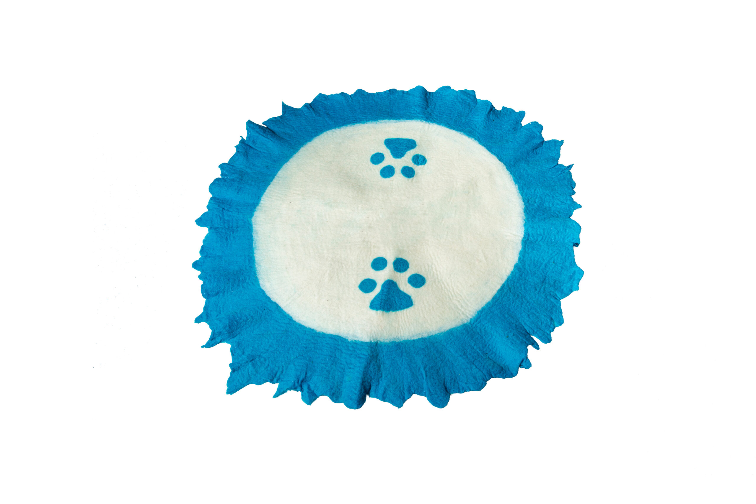 • Eco-Pet Rug (Blue/White)- 100% Natural Wool-Eco Friendly Dog/Cat Mat with paw design-Size 39″ inch Diameter